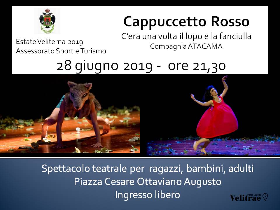 « Tutti gli Eventi Questo evento è passato. Cappuccetto Rosso – C’era una volta il lupo e la fanciulla – Estate Veliterna 2019 28 Giugno 2019 h.21:30 - 23:30 « Tu Mia International Dance Theatre Festival Zawirowania La Conoscenza della non conoscenza 02 » Salva nel tuo calendario Google Calendar iCalendar Outlook 365 Outlook Live Dettagli Data: 28 Giugno 2019 Ora: 21:30 - 23:30 Categoria Evento: DanzaTeatro Sito web: https://www.compagniaatacama.it/spettacoli/cappuccetto-rosso-cera-una-volta-il-lupo-e-la-fanciulla/ Luogo Piazza Cesare Ottaviano Augusto Piazza Cesare Ottaviano Augusto Velletri, RM 00049 Italia + Google Maps Numero di telefono +39.06.961581 Visualizza il sito del Luogo Leave Comment Annulla risposta<b>Comment</b> ( * ) Name Email Website Salva il mio nome, email e sito web in questo browser per la prossima volta che commento. Δ Questo sito utilizza Akismet per ridurre lo spam. Scopri come vengono elaborati i dati derivati dai commenti.