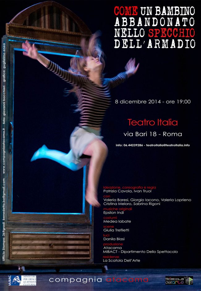 « Tutti gli Eventi Questo evento è passato. Come un bambino abbandonato nello specchio dell’armadio – al Teatro Italia 8 Dicembre 2014 « Come un bambino abbandonato nello specchio dell’armadio – al Teatro Furio Camillo Aprile – a Napoli » Salva nel tuo calendario Google Calendar iCalendar Outlook 365 Outlook Live Dettagli Data: 8 Dicembre 2014 Categoria Evento: DanzaTeatro Sito web: http://www.compagniaatacama.it/spettacoli/come-un-bambino-abbandonato-nello-specchio-dellarmadio/ Luogo Teatro Italia Via Bari, 18 Roma, RM 00161 Italia + Google Maps Numero di telefono 06 4423 9286 Visualizza il sito del Luogo Leave Comment Annulla risposta<b>Comment</b> ( * ) Name Email Website Salva il mio nome, email e sito web in questo browser per la prossima volta che commento. Δ Questo sito utilizza Akismet per ridurre lo spam. Scopri come vengono elaborati i dati derivati dai commenti.